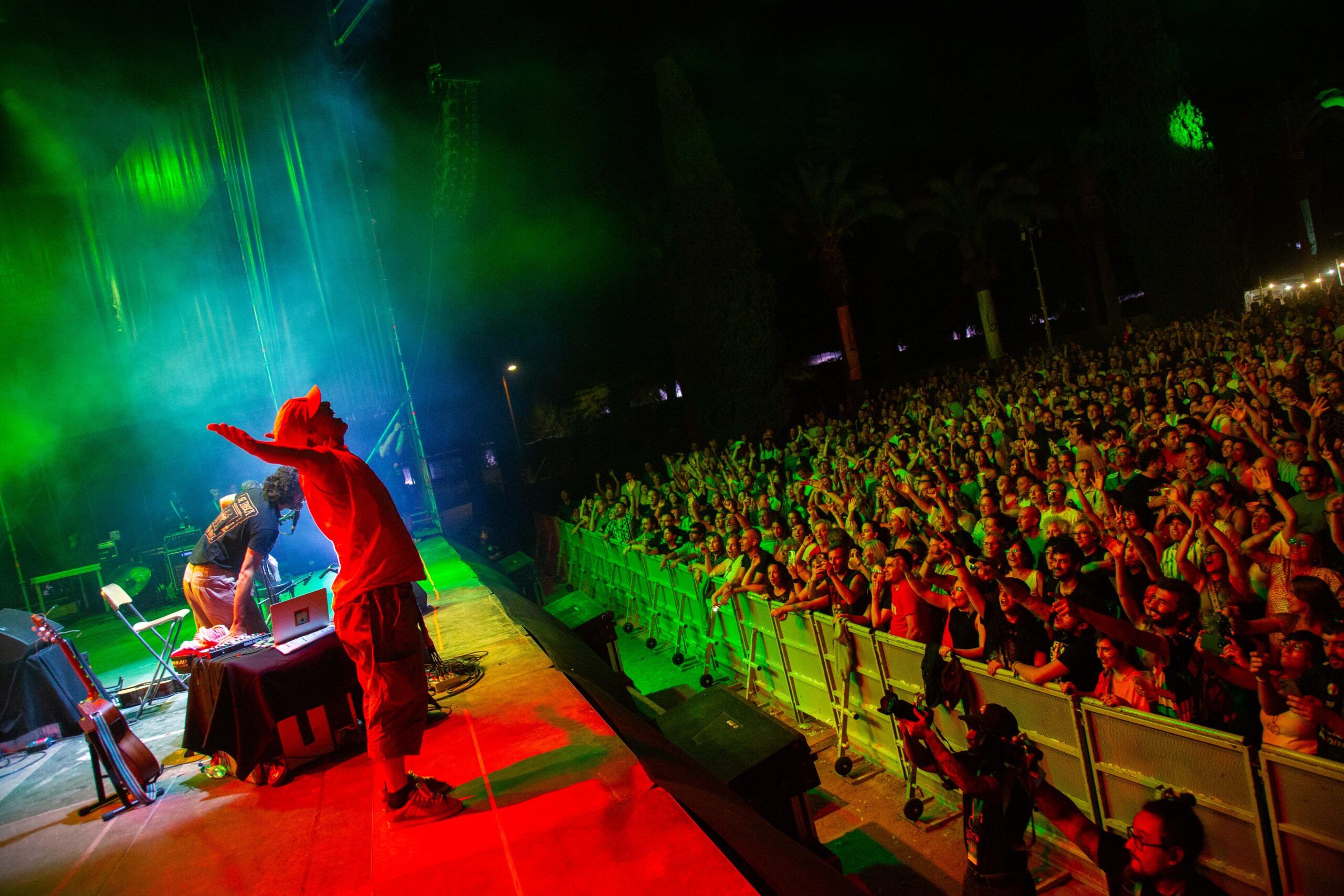 Antes de que Manu saliera a escena, el músico extremeño El Flako Rodríguez fue el encargado de abrir la jornada, posicionando su propuesta urbana, mestiza y personal ante un público multitudinario. Su presencia como telonero de Manu Chao en un escenario de gran formato supuso un paso firme en su trayectoria, y fue una clara muestra del talento que brota desde el territorio. Con beats contundentes, letras cargadas de mensaje y una energía directa, El Flako preparó el ambiente para lo que sería una noche inolvidable.
